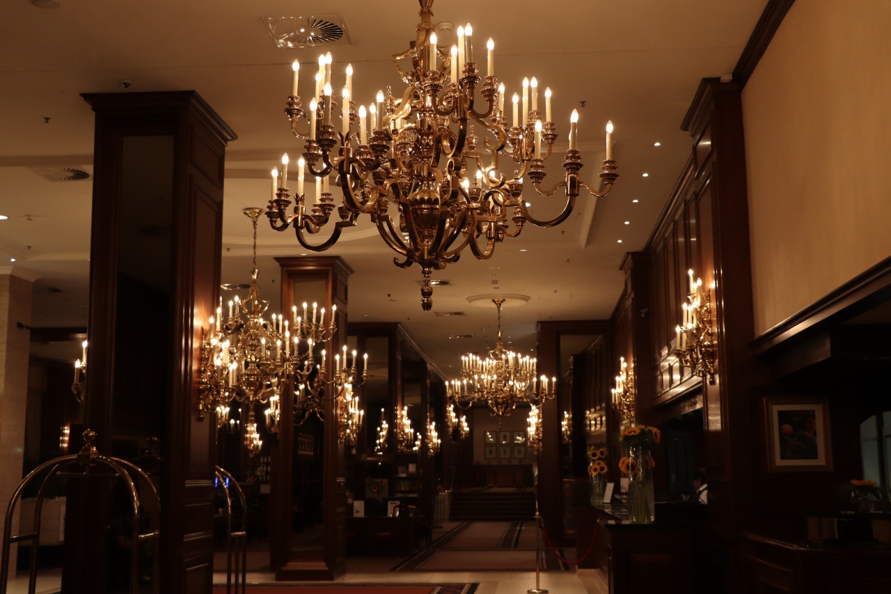 シャンデリアをはじめクラシックな調度品が数多く飾られ、
