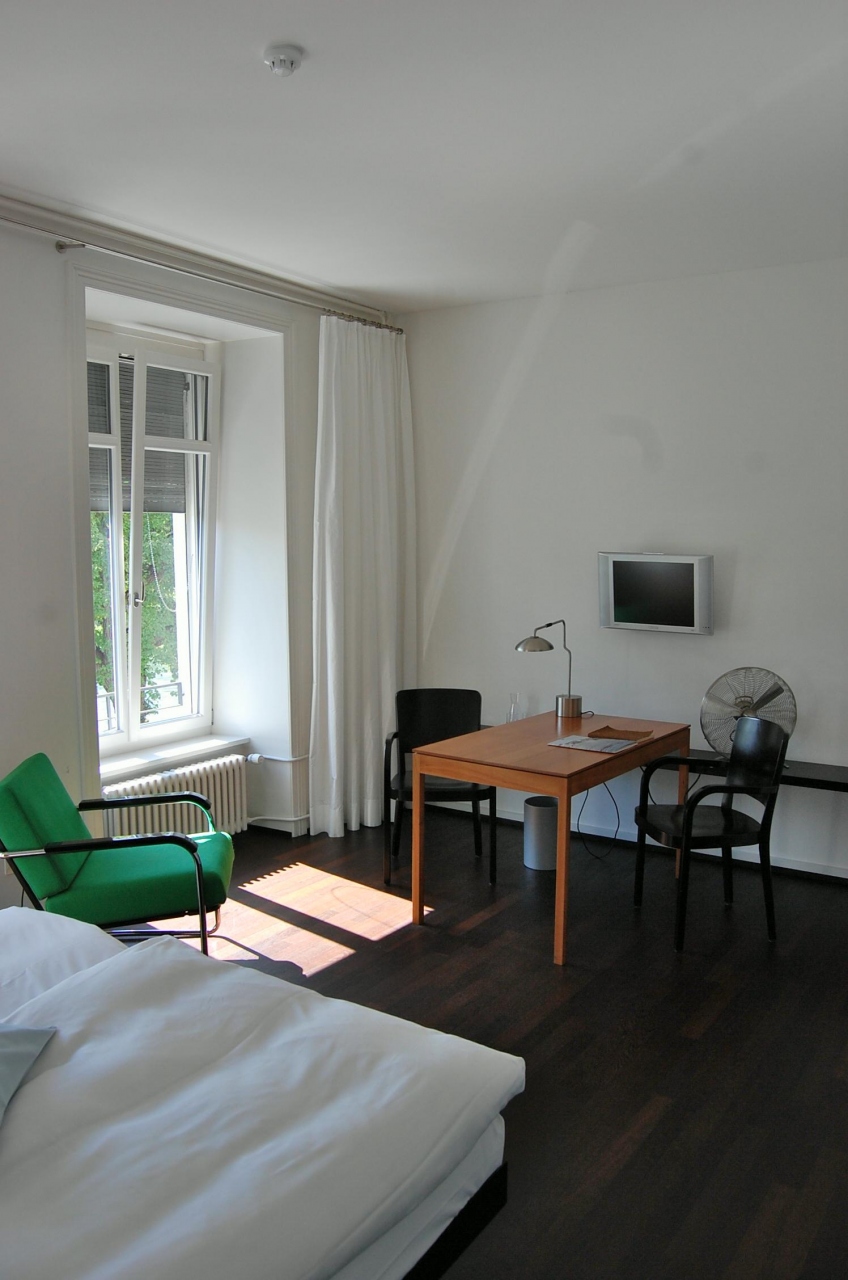 バーゼルの中心を流れるライン川に面して建つこのホテルは、文化財的に保存する建物の内装をモダンに改装したデザインホテルです。