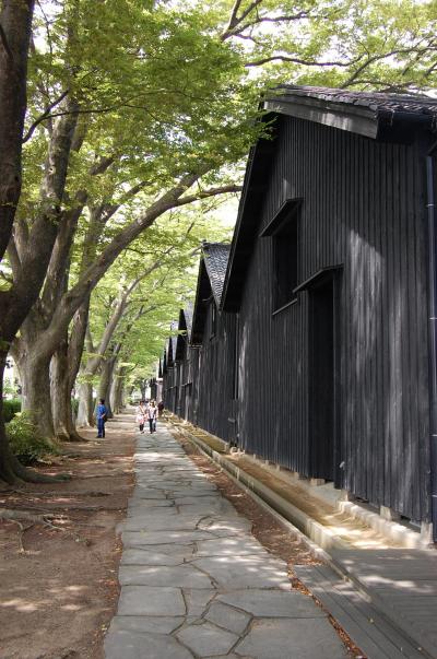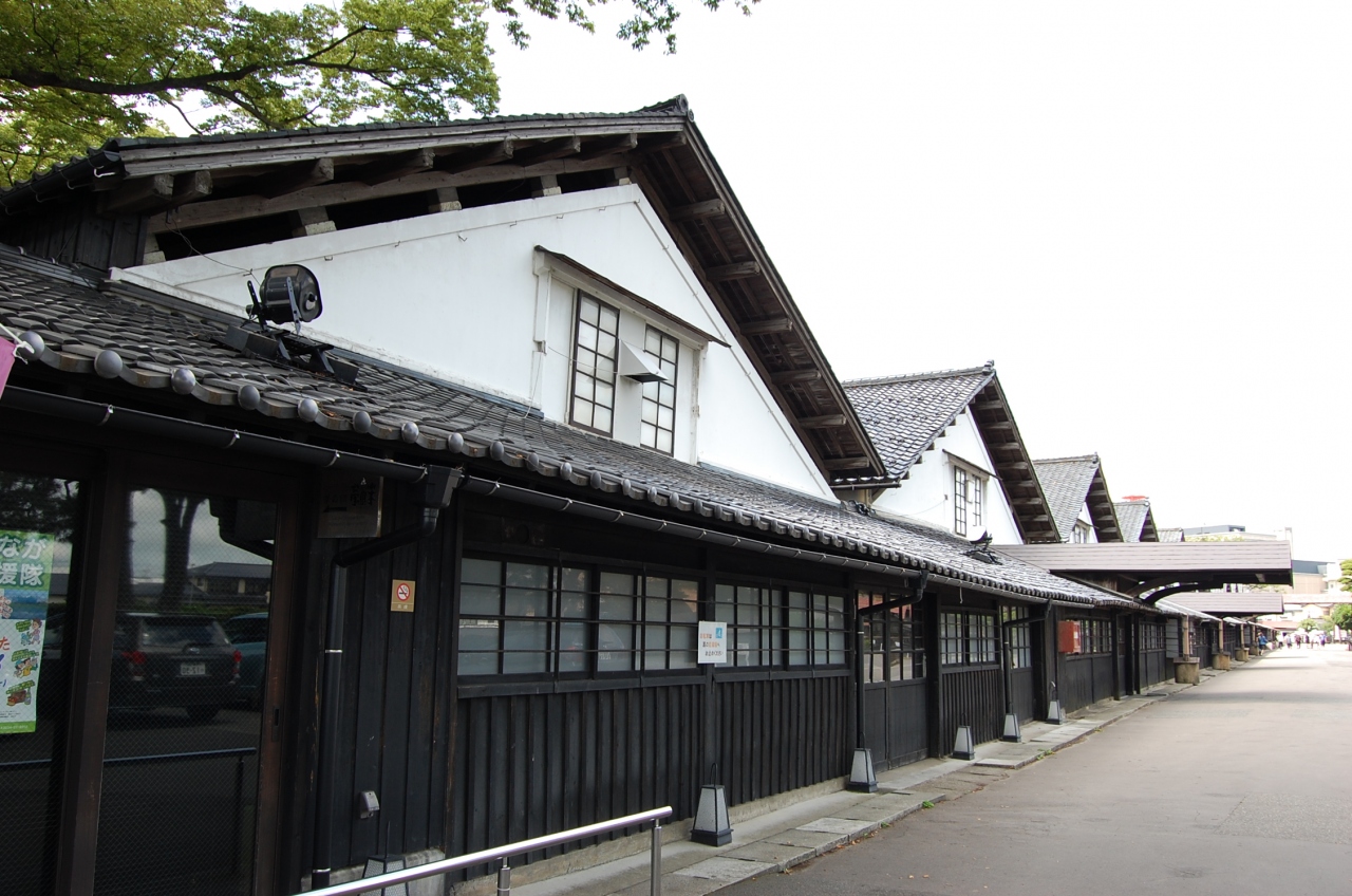 酒田市の川沿いに建つ山居倉庫は今でも現役の米の倉庫です。