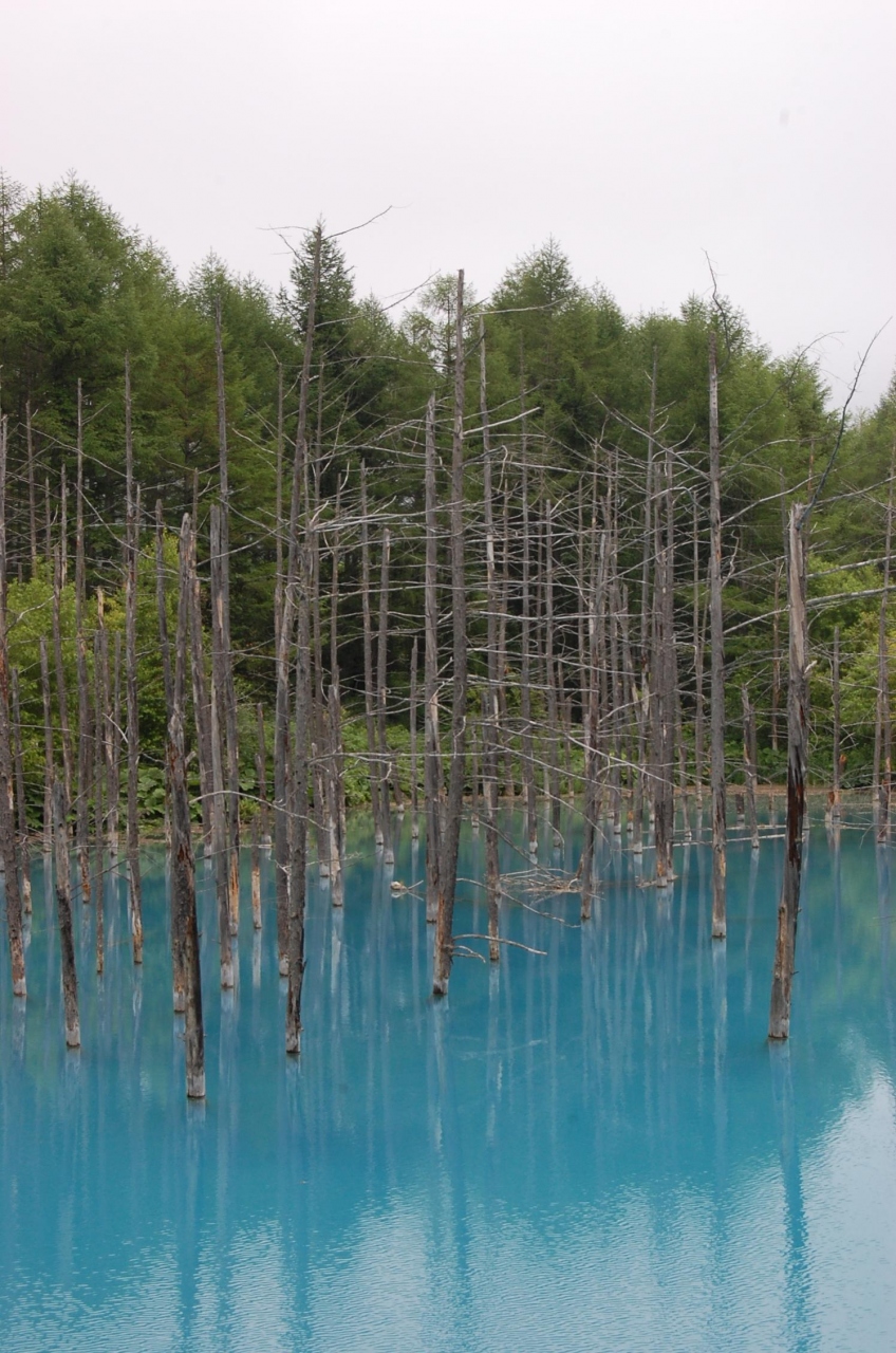 最近になって話題になって来た観光スポット。本当に青い。青白いというのか不思議な青さ。元々は防災用としてせき止められた池ですが、枯れた木々が浮かぶように立つ景観も幻想的な雰囲気を醸し出しています。
