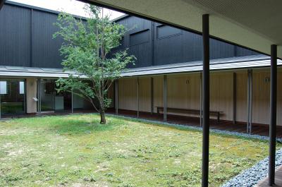 良く写真にあるケヤキ並木の黒い板張りの西側は、暑さを防ぐ為の二重壁になっています。