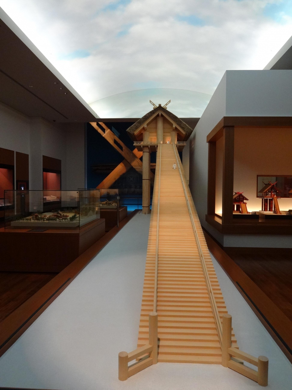 島根県立古代出雲歴史博物館は出雲大社のすぐ東側なので、参拝後にうってつけです。館内はフラッシュを炊かなければ撮影OK。出雲大社の復元模型は圧巻のスケール。銅鐸や鉾の見せ方もなかなか面白いと思います。広大な敷地のランドスケープも美しく散歩するだけでも楽しめます。駐車場も無料で充実しているので、こちらに車を止めて参道を通らず出雲大社にショートカットも出来そうです。