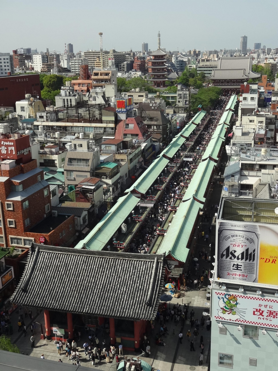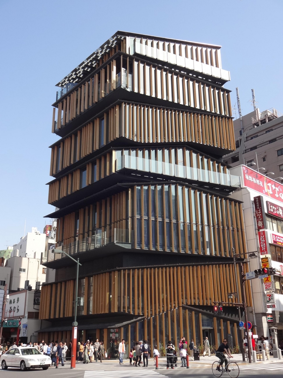 浅草文化観光センターが建築家隈研吾氏設計で新しくなりました。当初町家を積み重ねたような外観がどうなることかと思いましたが、以外と浅草に違和感無く馴染んでいます。最上階に展望台とカフェがあり、東京スカイツリーと浅草仲見世が一度に見渡せます。最上階のカフェはホットドックとベーカリーパン程度ですが、カウンター席からの眺めは最高です。他にも下町浅草の展示等もありました。