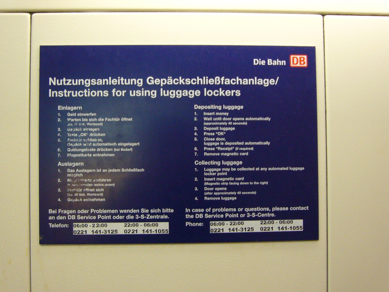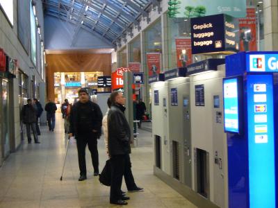 ケルン駅のコインロッカーは大聖堂のある側の東西通路の中央付近にあります。