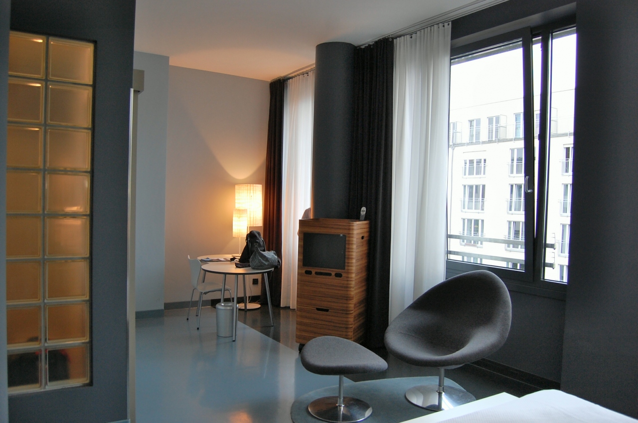 部屋は日本のビジネスホテルよりはるかに広いです。カッコイイしスマートなイメージですが、機能的というレベルからはいま一歩抜け出ていないというところでしょうか。