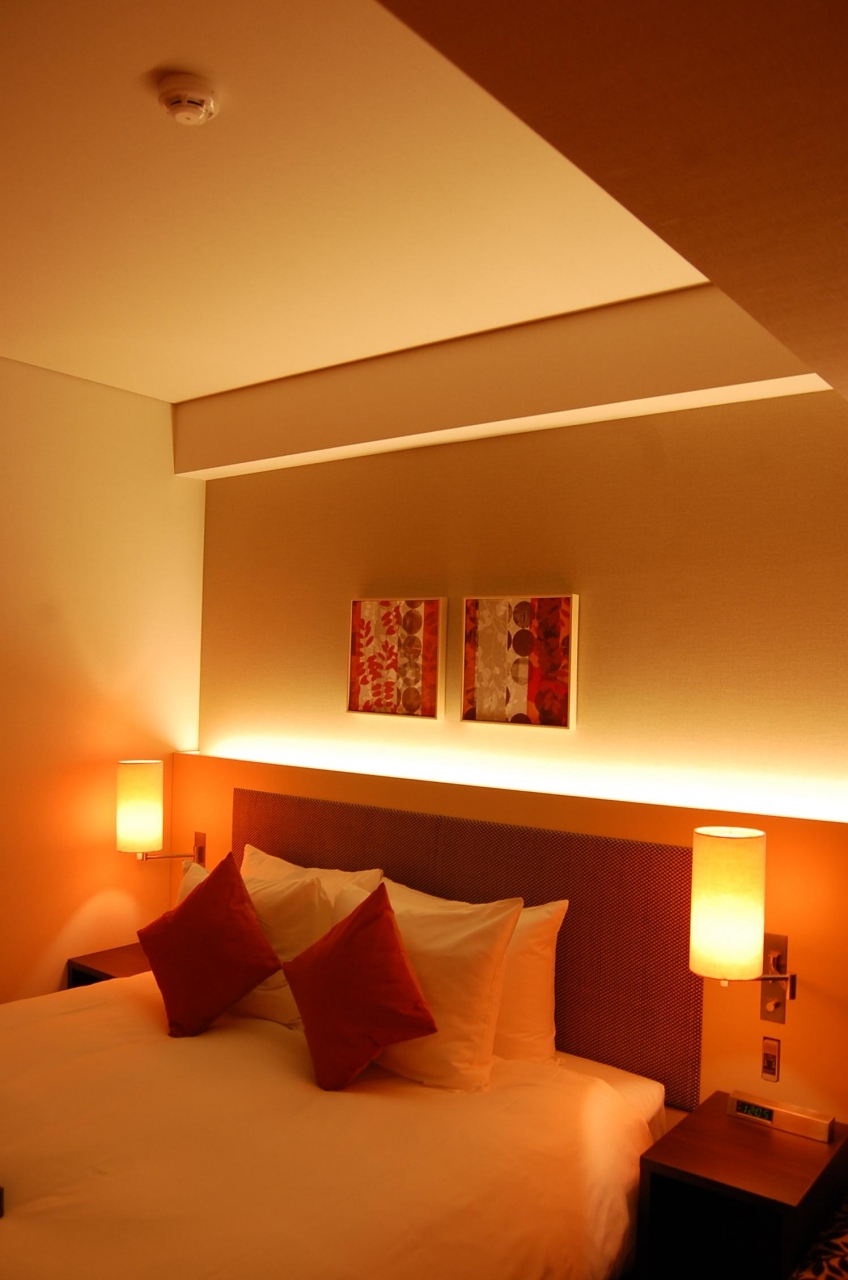 駅からは徒歩7~8分程度あるので、やや不便だが、官庁街には近く、周囲には飲食店などもあり、便利なところです。部屋はファブリックの色や照明も手伝ってか、オレンジ色に“燃えています”。広さにはゆとりがあり、窓も床まであり大きいのでビジネスホテルにしては開放感があります。ベッドも大きく、ちょっとしたソファもあるのでなかなか快適です。