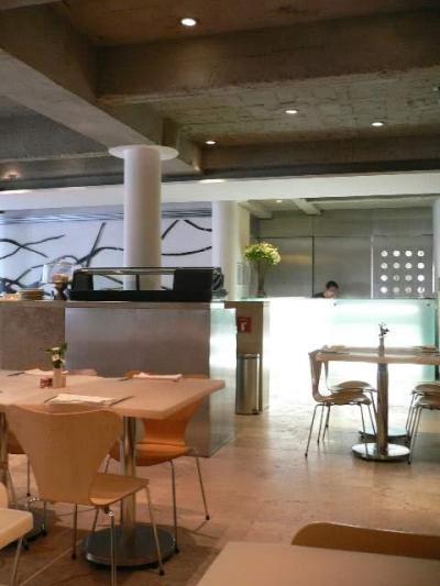 地下のカフェには食事のメニューもありましたが、食事はあまり期待しないほうがよさそうです。飲み物とお酒は問題なしです。周囲にはほとんどレストランやカフェ、スーパーなども見当たりませんでした。
