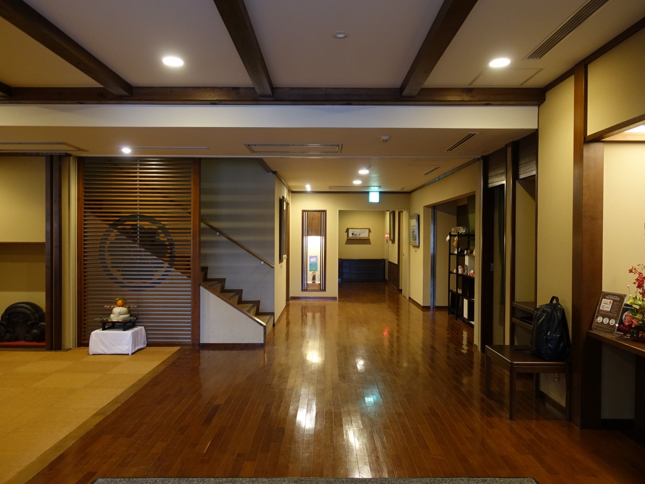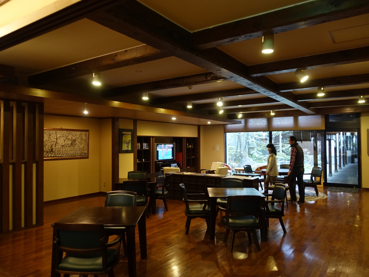 食事処も朝は大混雑で20-30分待ち。臨時会場は宴会場のようなところで景色も何もなし。
