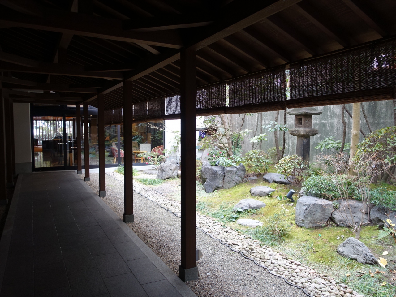 周囲は何の変哲も無い住宅地ですが、周囲は竹林に仕立て、客室は中庭に面して配置されています。