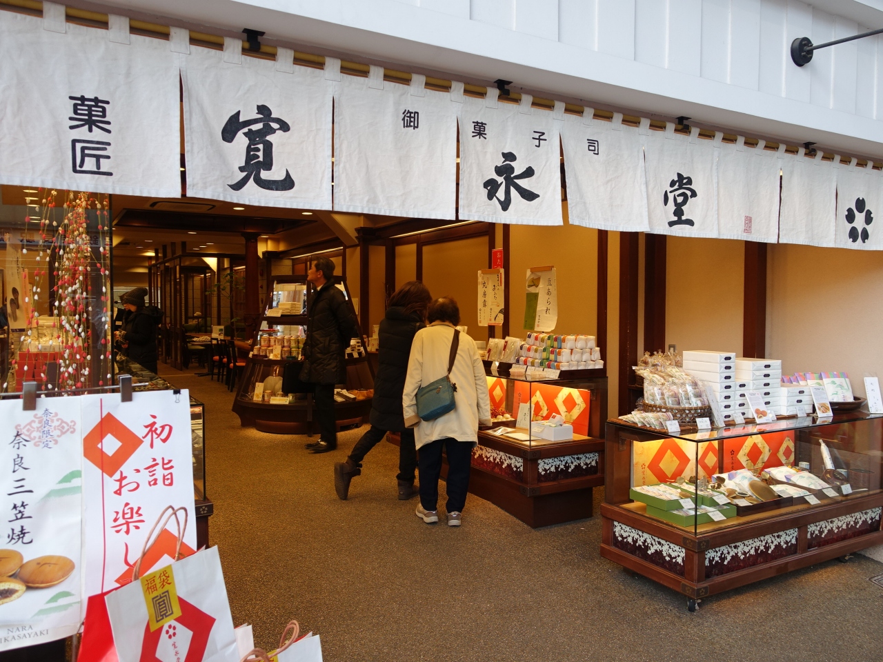 やはり奈良と言えば「三笠焼」。これは関東で「どら焼き」と呼ばれていますが、関西では奈良の三笠山の形に似ているので「みかさ」です。その他和菓子がたくさんあり、黒豆茶と一緒に試食を勧められてしまうと、もう買ってしまいます。羊羹や饅頭などバラエティ豊かなので、迷ってしまう品揃え。1個からのバラ売りもあるので、試しに食べておいしければ帰りにまとめ買いもオススメです。- 旅行時期