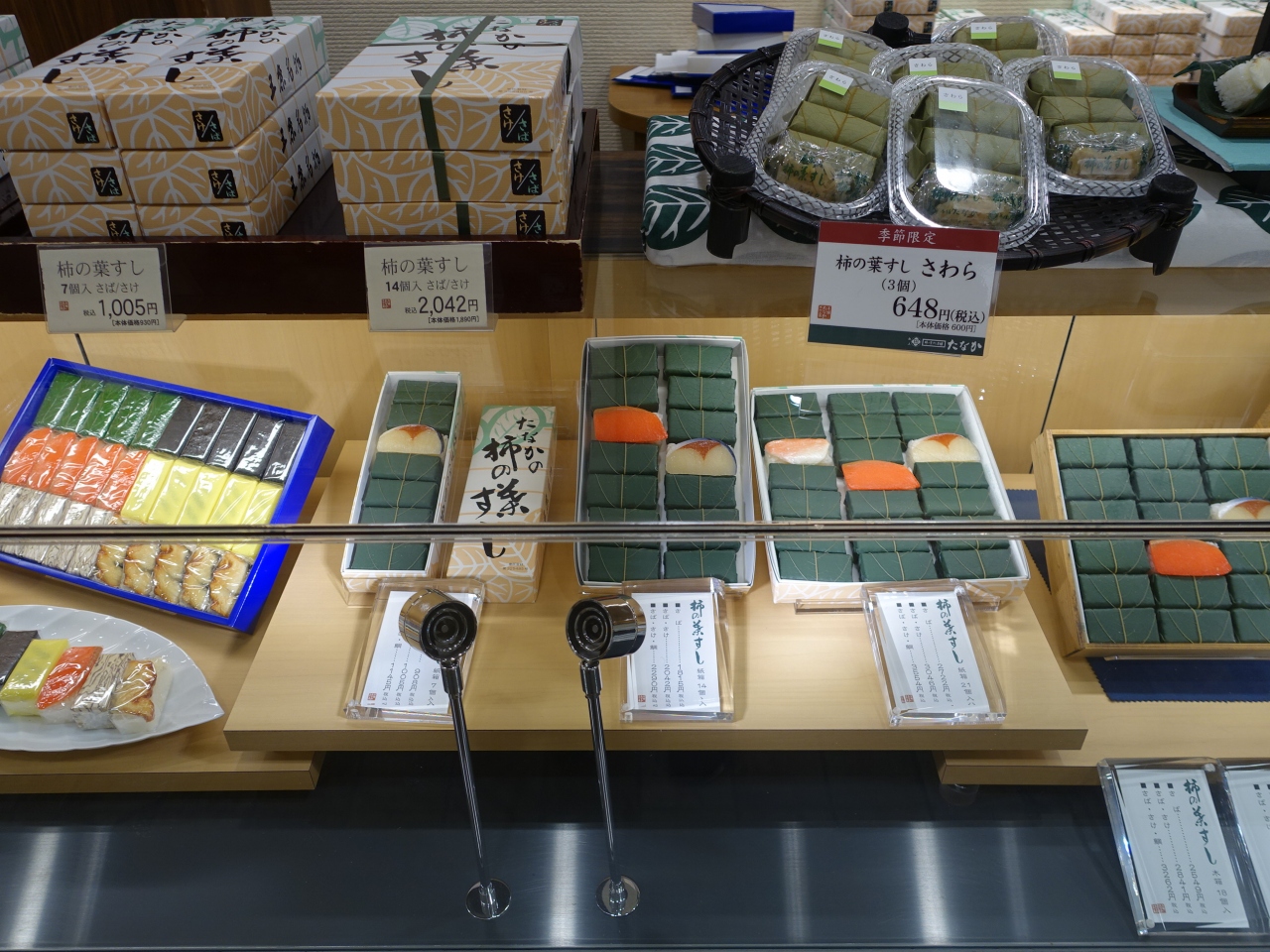奈良名物を食べつくすため、ランチに選びました。お持ち帰りの柿の葉ずしがメインですが、長屋のように奥に長い店内の一番奥に、お食事処があります。こぢんまりした場所で、メニューもそんなに多くはないですが、柿の葉ずしの種類を一通り味わうことができます。