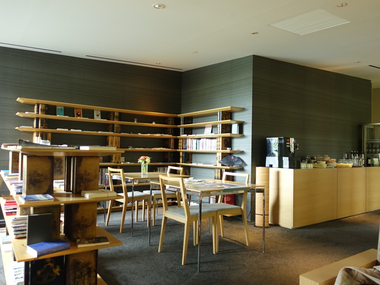 ラウンジを利用でき、飲み放題。ラウンジの図書も宮崎やデザインの本など多く充実しています。