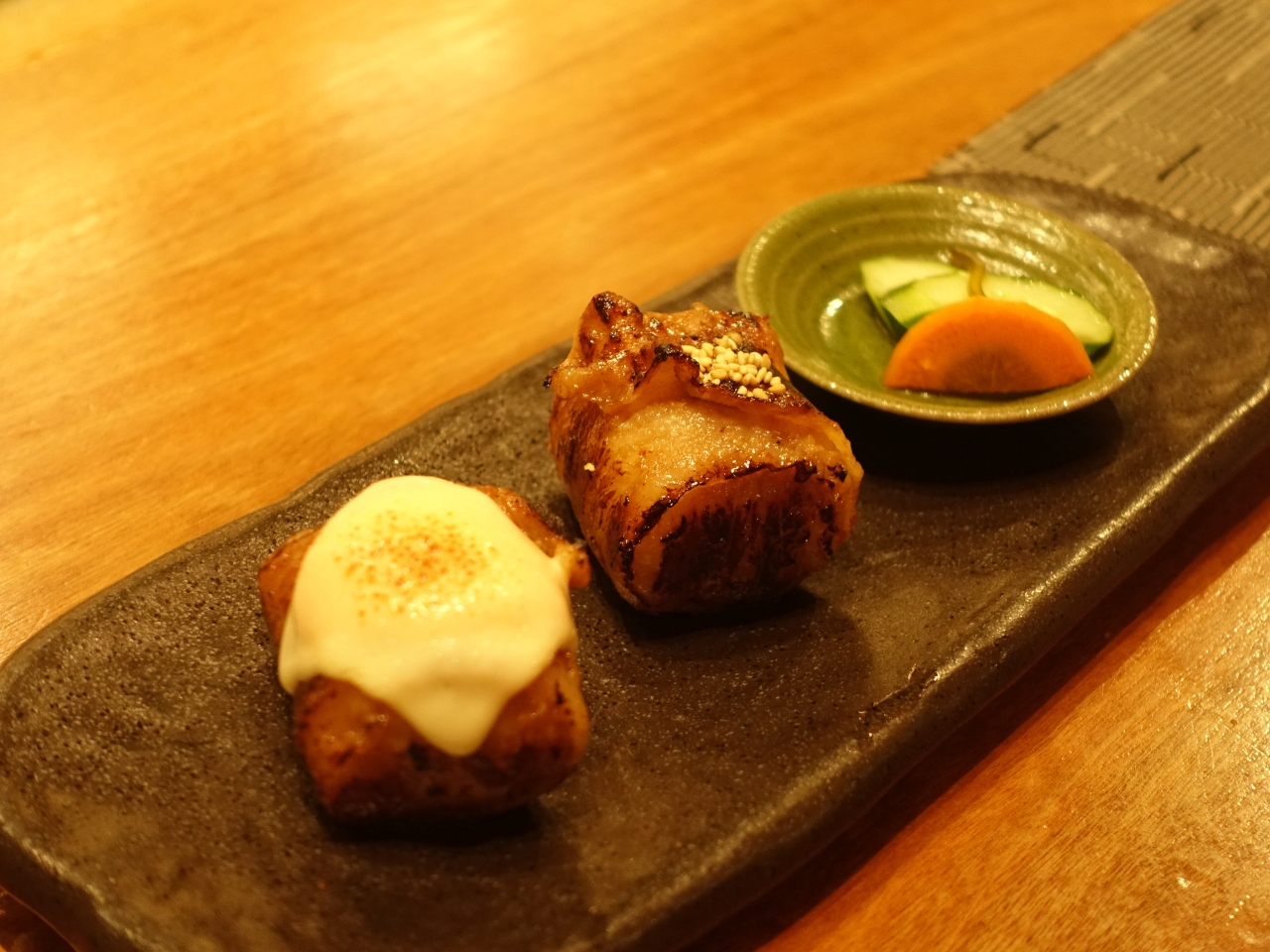 チキン南蛮は鉄板で焼くオリジナル。刺身、宮崎牛、肉巻きおにぎり、ビール霧島などなど堪能しても、