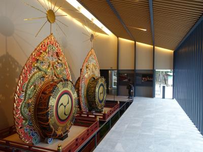 外からでも見えるきらびやかで大きな太鼓や、順路最初に見るインスタレーションは魅力的ですが、2階の展示は刀剣好きならという感じです。国宝の太刀や鎧などもありますが、展示室はそんなに大きくはないです。