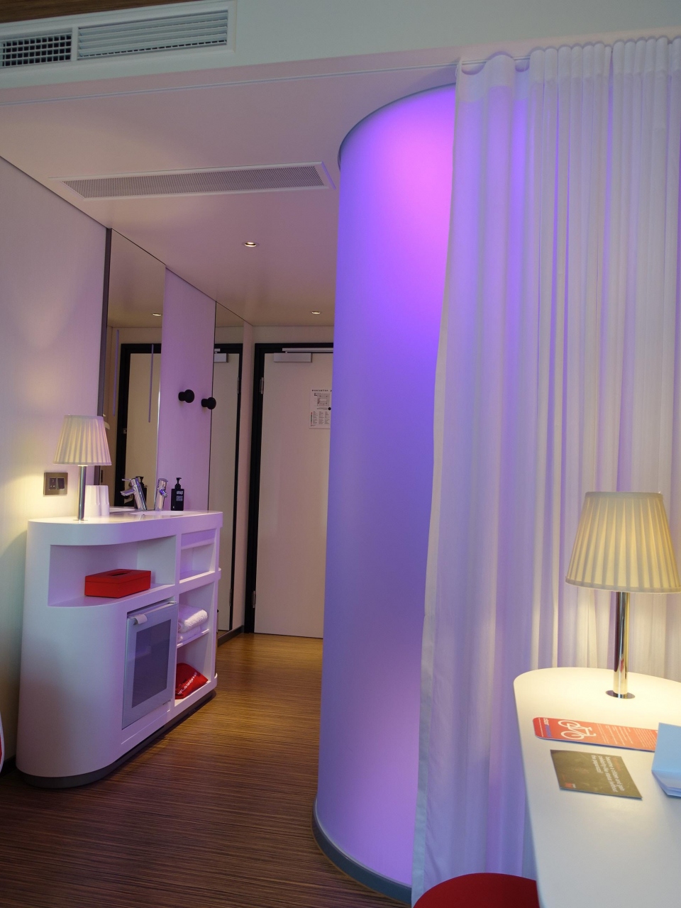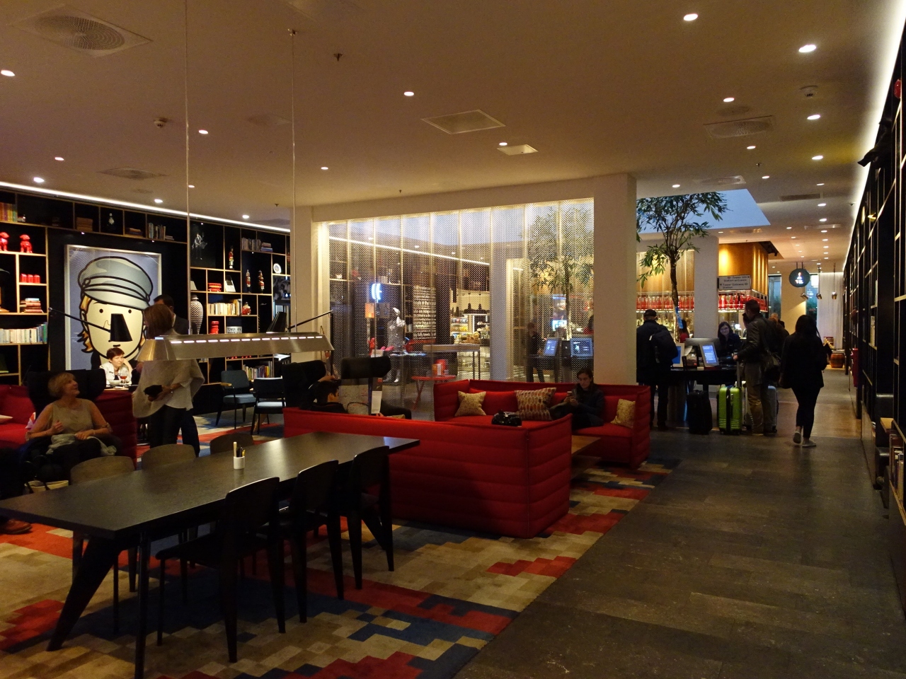 チエックインも自分でPCを使って可能ですが、スタッフの方が親切に教えてくれます。部屋の向きや高層や低層なども選べます。吹抜けに面した部屋も面白そうだったのですが、向かい合わせなのもどうかと思い広場側にしました。