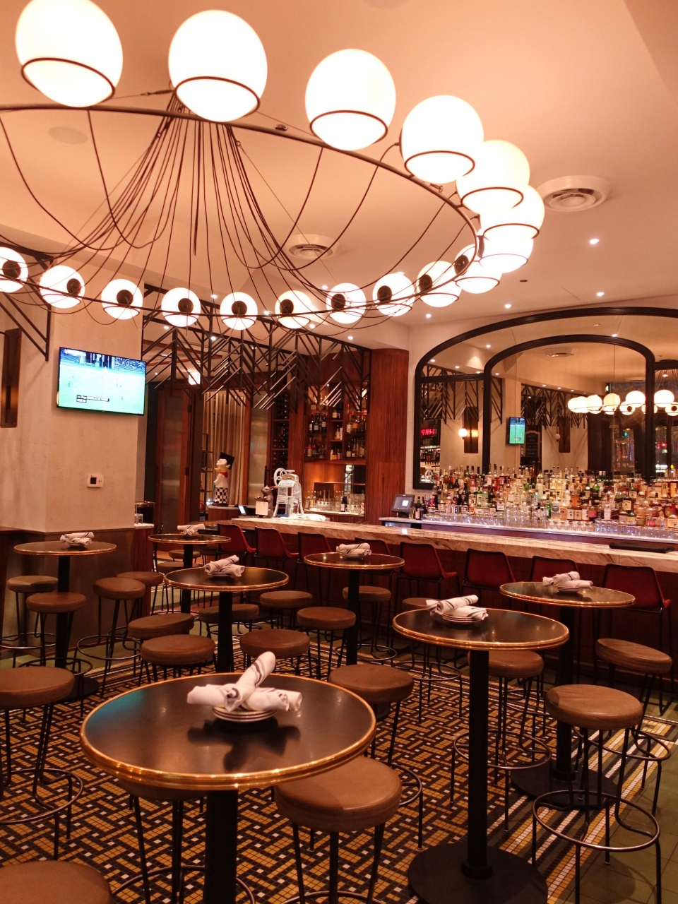 レセプションロビーはあまり広くはないです。食事は1階にフレンチ風ダイナーが併設されていますが、ホテルの専用店ではないようです。隣にはマクドナルドもあるので節約したい場合はそちらもありです。