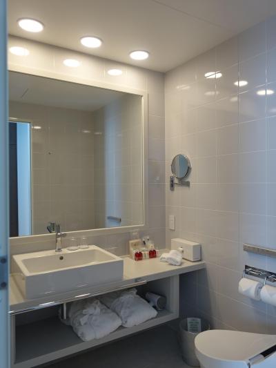 水廻りの面積が部屋の面積と同じぐらいあります。ソフトドリンクなどは無料でした。
