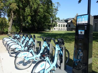 シカゴ市内にもありますシェア自転車。シカゴは地形がほとんどフラットなので、自転車移動が楽です。
