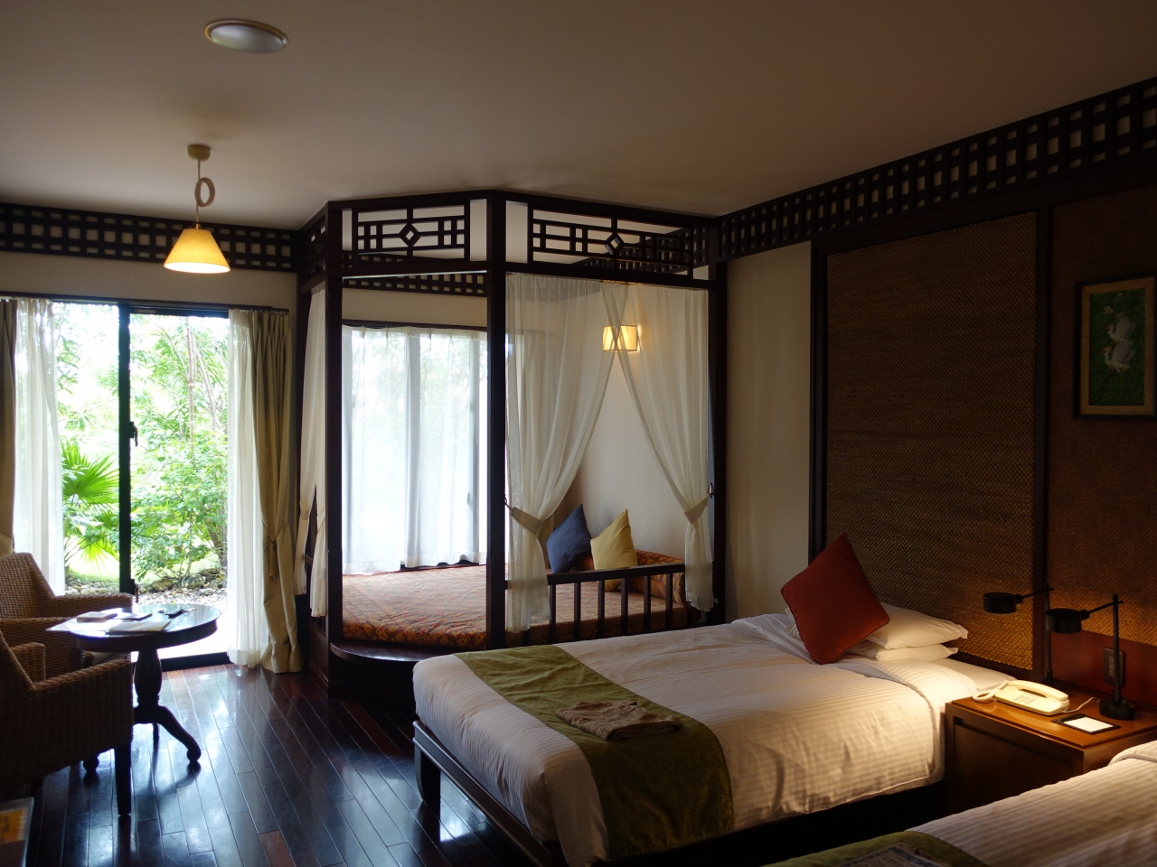 部屋はハリウッドツインという、ツインベッドを二つ引っ付けたタイプ。要するに狭いんですね。リゾート感はありません。狭さからか居心地も今一つです。