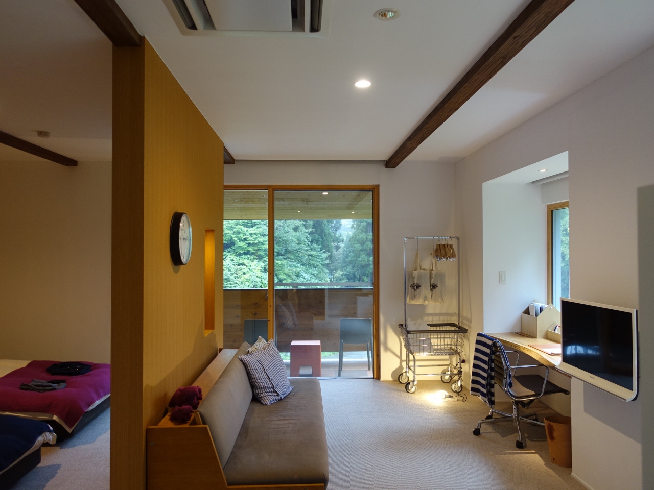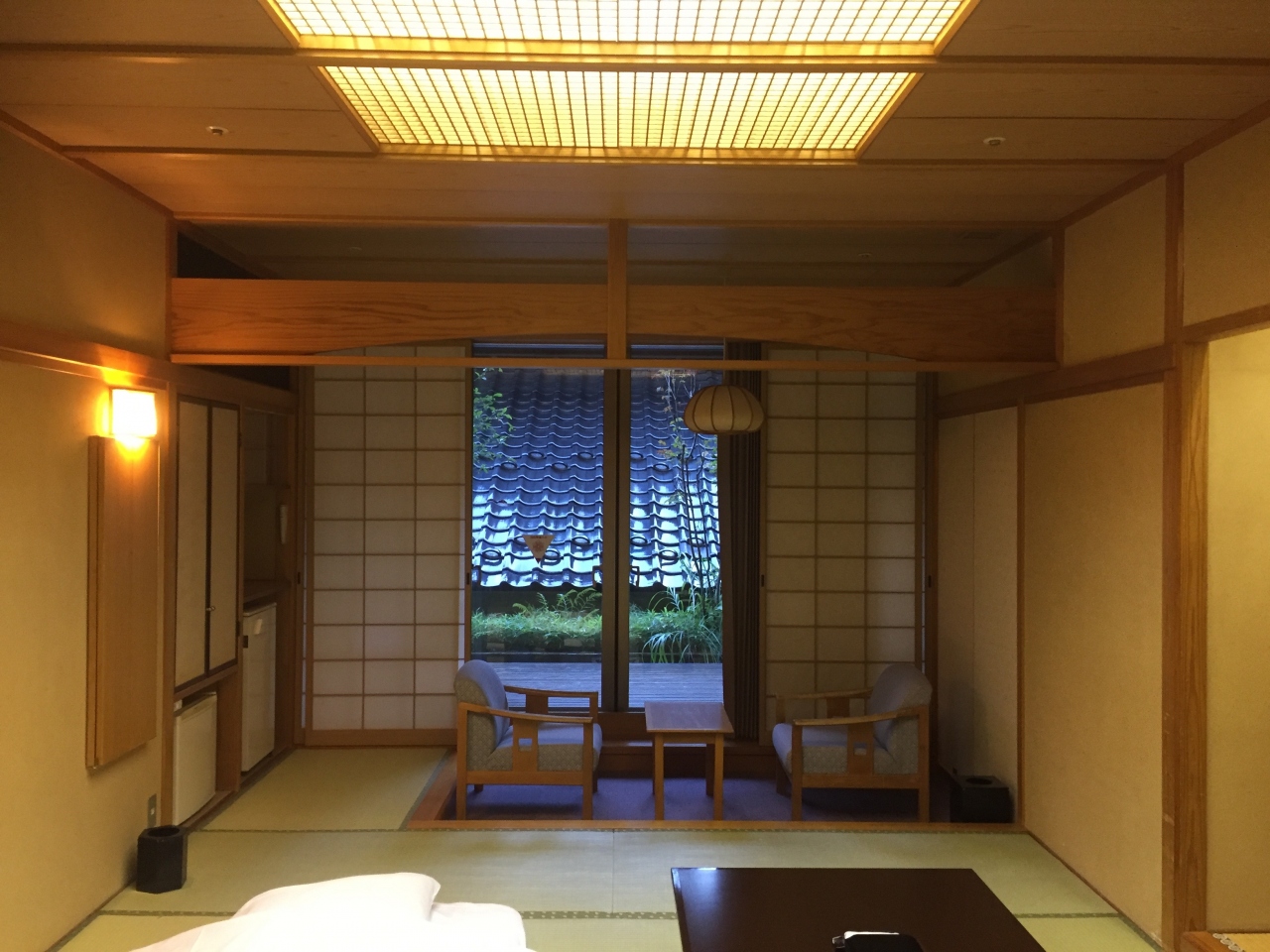 部屋は二人ではもてあますぐらいに広く、全室野洲川に向いています。残念なのは窓が開かないので、部屋で川の流れる音を感じることはできません。おそらく窓を開けると虫が入ってくるのでしょう。