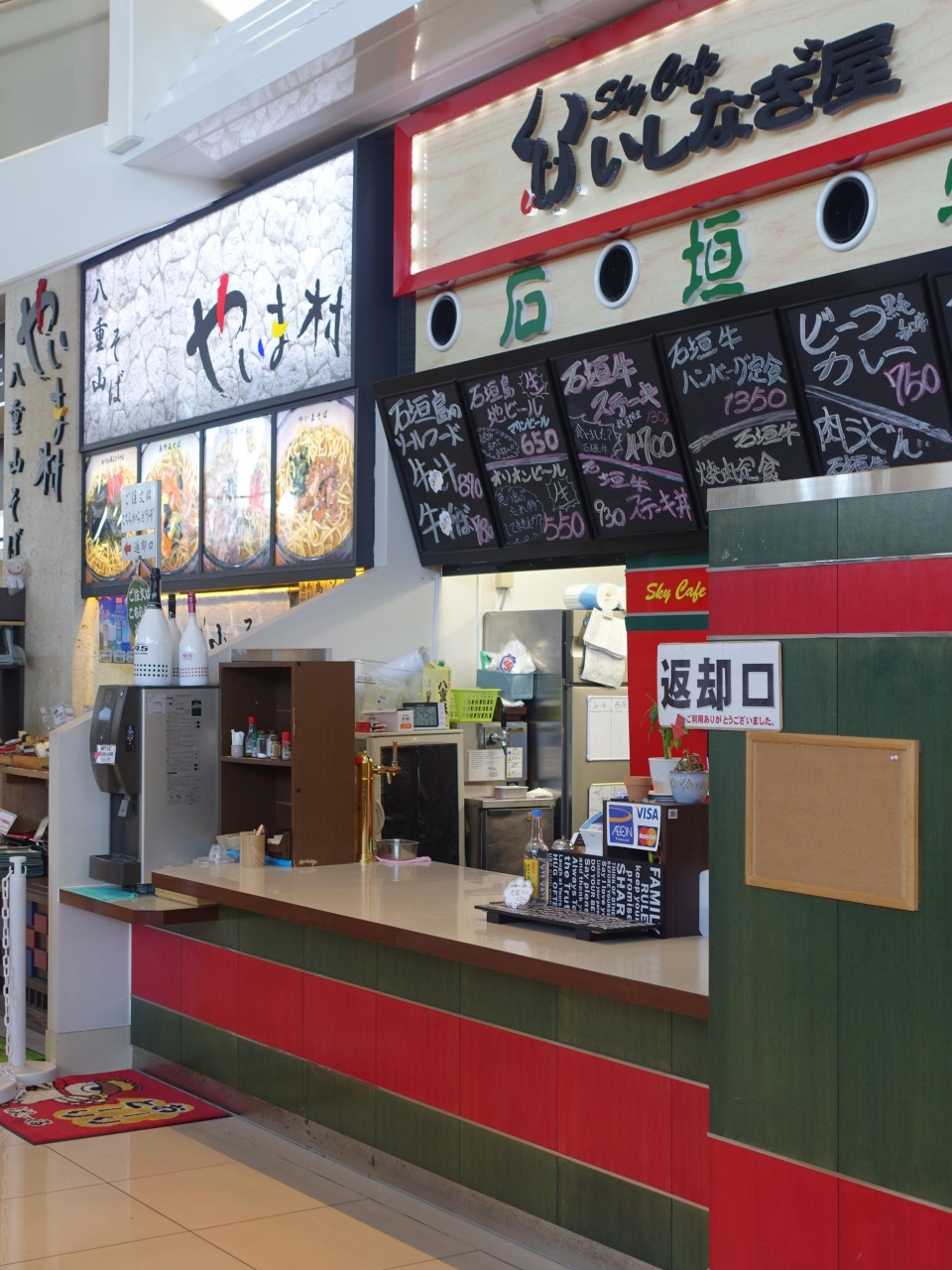 お土産物も充実。食事もフードコート形式ですが、スタバから地元食、アイスクリームなどよりどりみどり。最後に八重山そばも食すことができます。