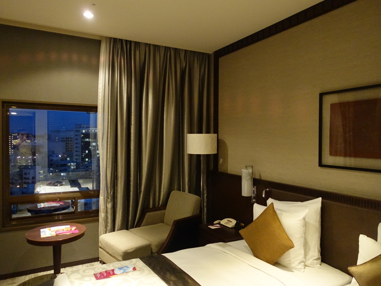 客層は外国人も多く、ビジネスホテルよりちょっと華やかな感じがあります。夜景も魅力的です。