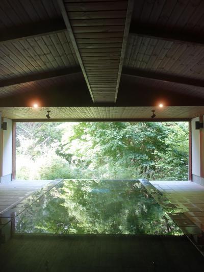 温泉も立湯という120cmの深い湯から見る山の木々は見事で、インフィニティプールならぬインフィニティ温泉です。他にも大浴場や寝湯などもあります。
