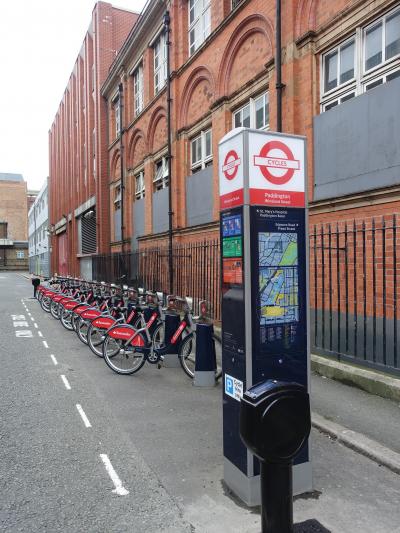 駅の12番ホーム(到着して最も左)にあるエスカレーター階段で2階に上がり、タクシープールを横目に、地下鉄入口から少し上がったところからさらに歩きます。パディントン・セントラルというオフィス街の最も奥の方にあります。