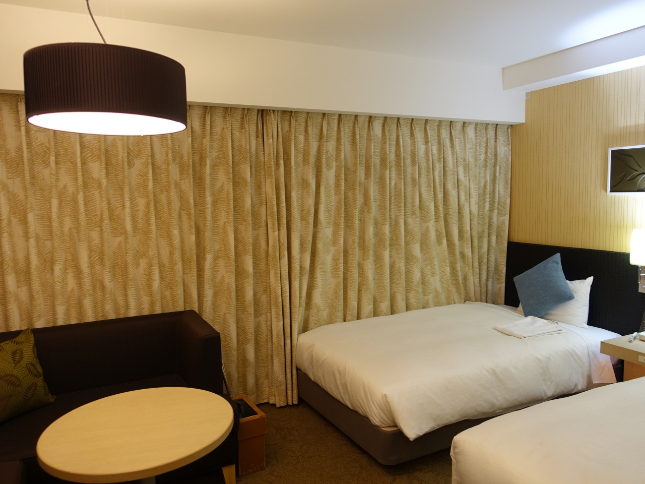 ホテルのロビーやダイニングもきれいで、印象よく、予約した部屋もツインのため、