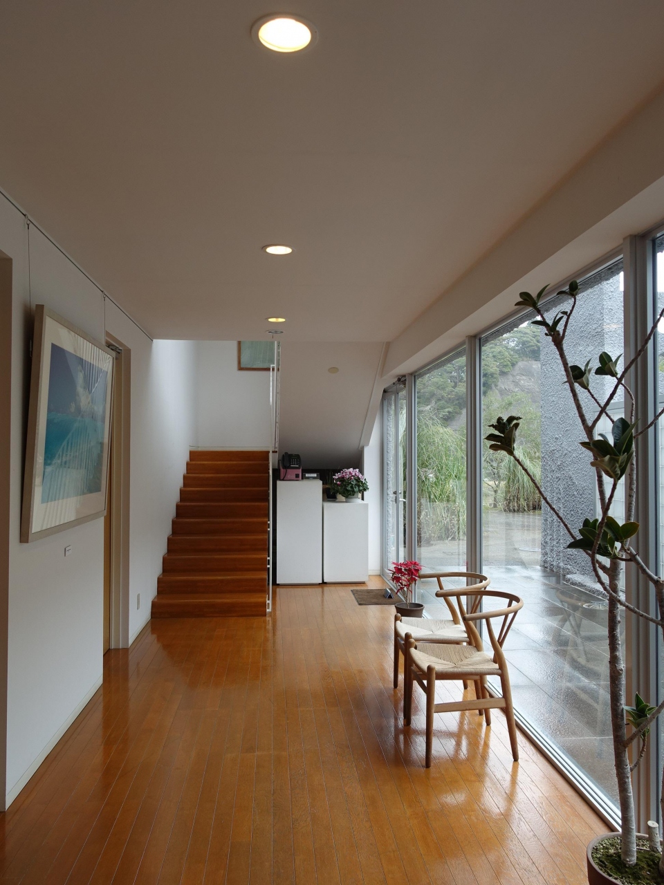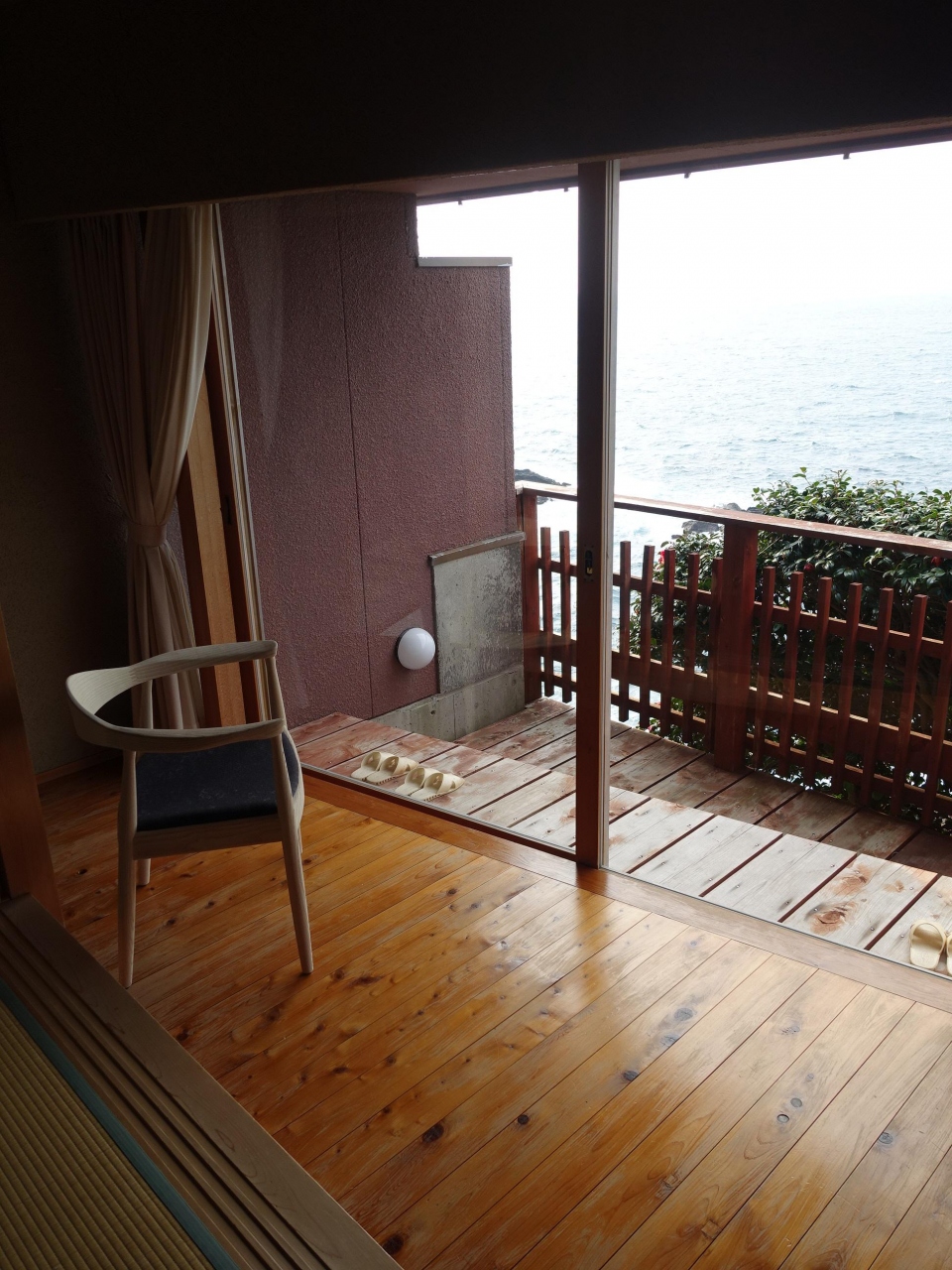 建物のデザインも素晴らしいのですが、部屋から見える海と空の様を感じる。