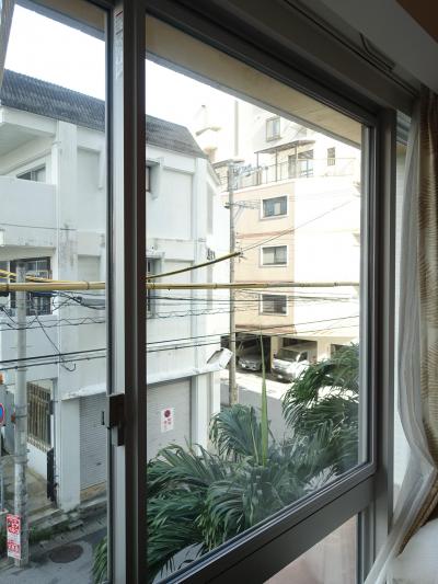 国際通リそば歩いて5分ぐらい。観光には便利です。