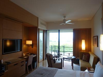 部屋は最安値バルコニー付き1階。ゴルフ場のティーの近くですが、
