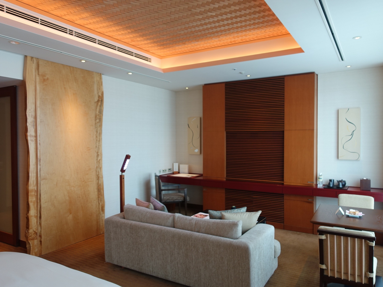 来賓用でもあるので、部屋は広くレストランも非常に豪華です。部屋にある食べ物やアルコール(ビール、ワイン、日本酒)は無料で追加も可能です。