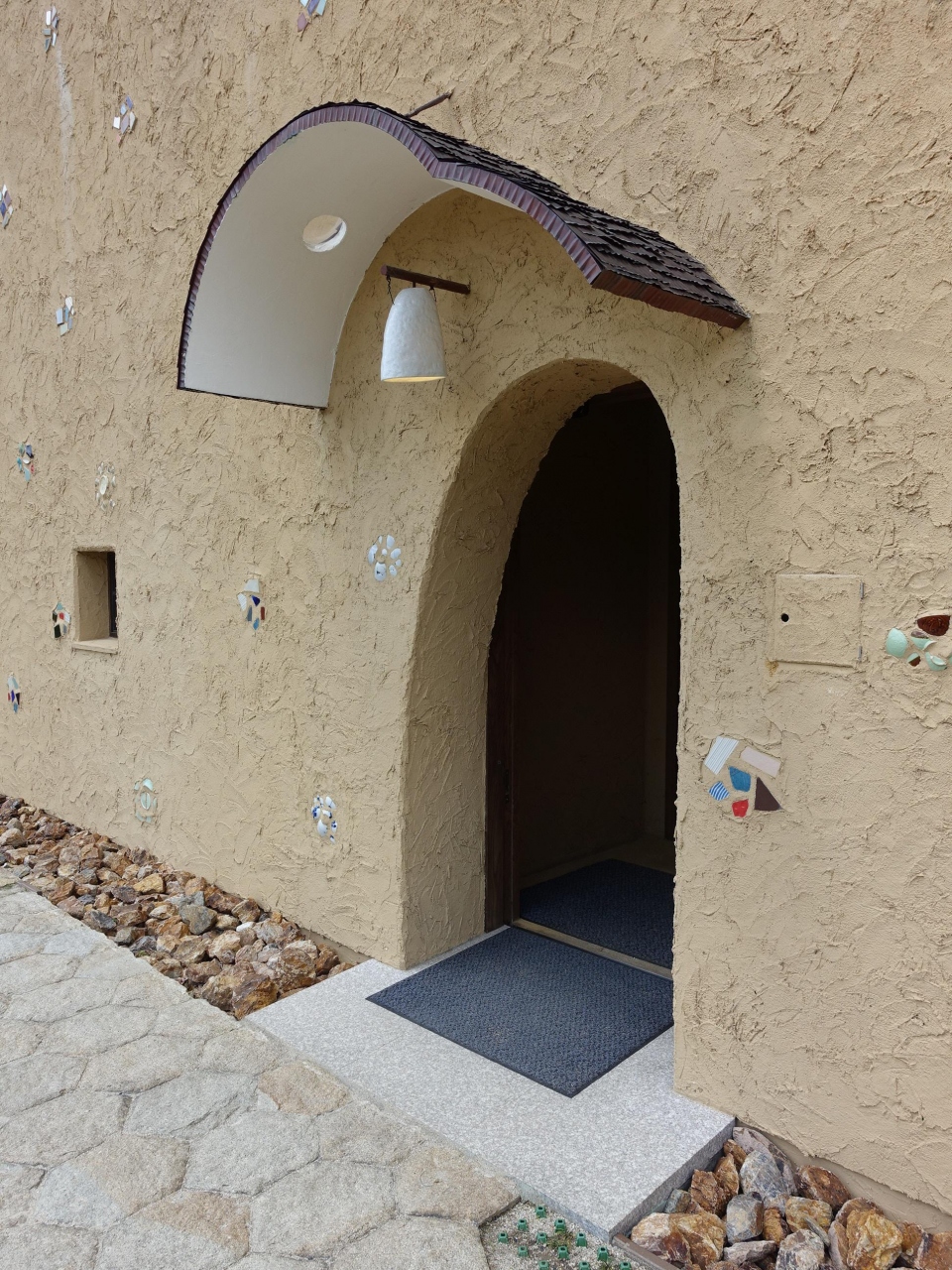 多治見駅からはバスに乗る必要がある距離です。(車で行きましたが結構な距離あり)周囲は普通の住宅地に忽然と藤森照伸氏の設計による独特な姿を現します。