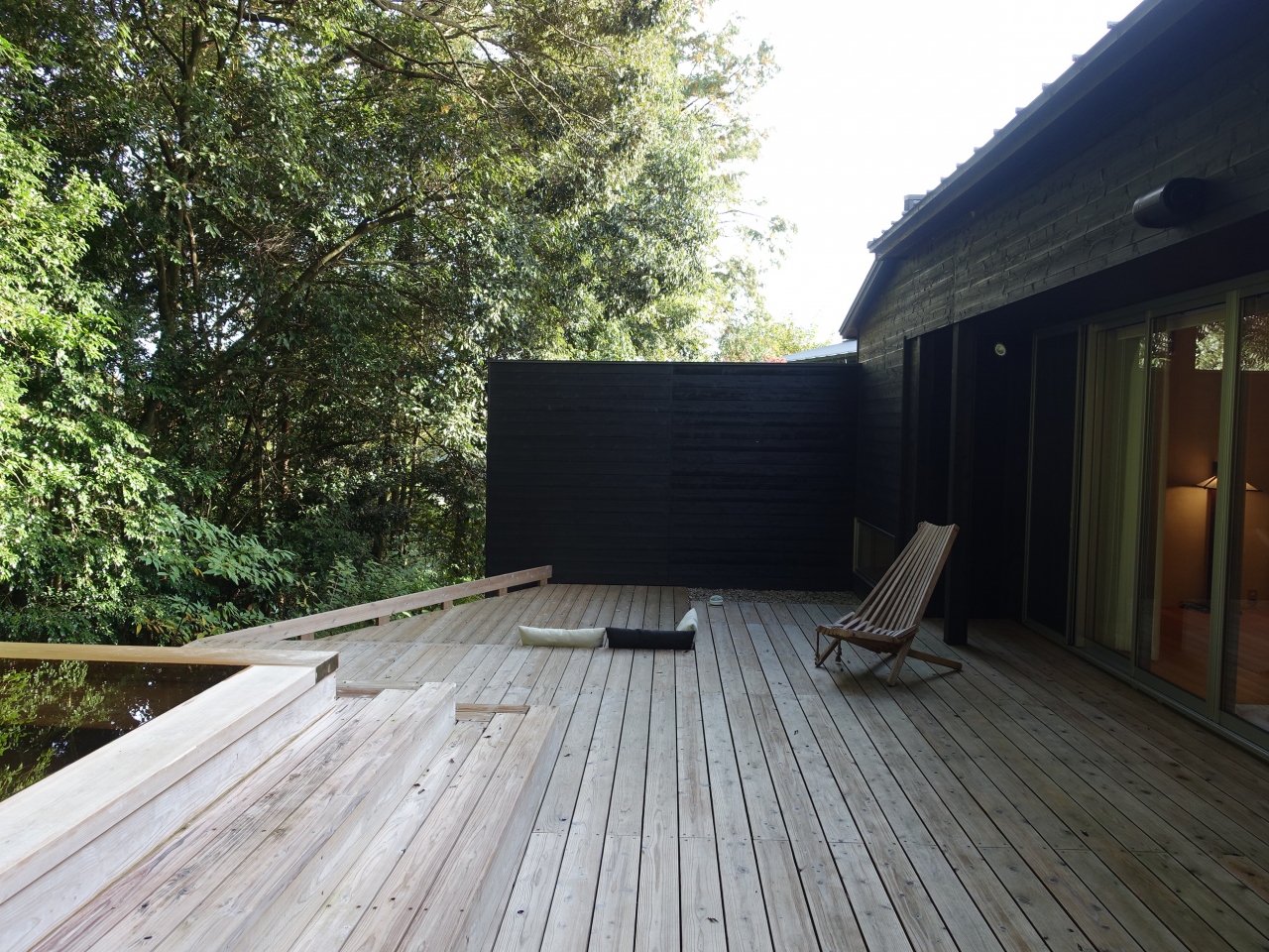 やはり特徴は広いテラスと露天風呂。お湯は少しぬめる程度で、皮膚が溶けるほどではありません。良いのは温度調節が自分でできること。温めの湯にじっくり浸かれました。