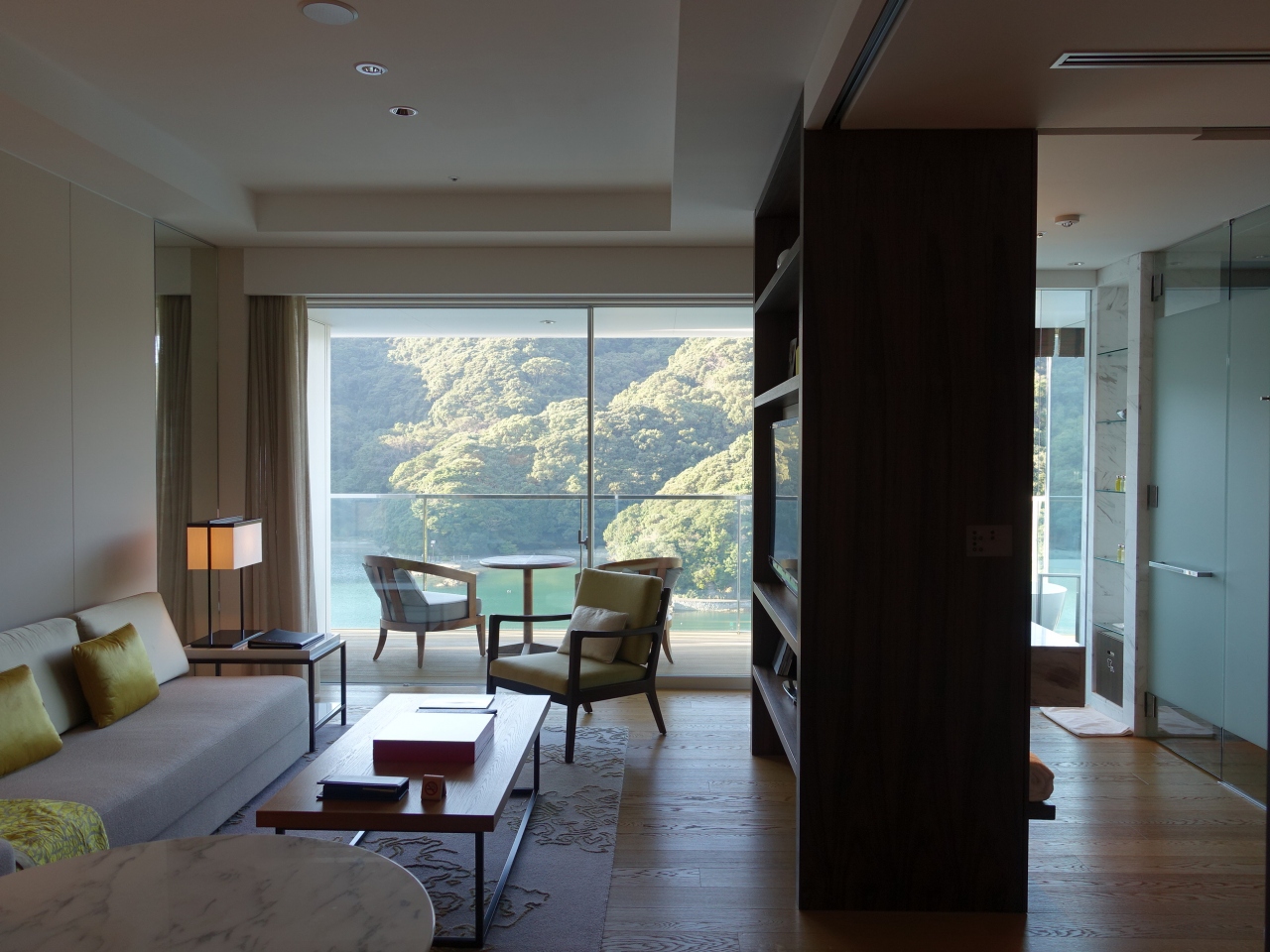部屋の窓は大きく開放的ですが、山側だったこともあり風光明媚というわけではありません。