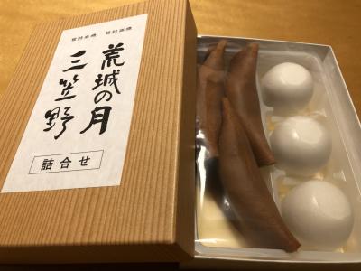 竹田のお土産に、荒城の月と三笠野という、和菓子詰め合わせを購入。