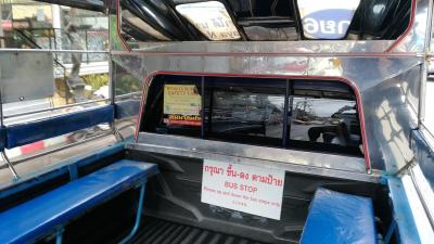 パタヤのビーチロードとセカンドロードをグルグル回ってるので乗りたいときは手を上げて降りたいときはブザーを押して10バーツ払うだけでとても簡単。