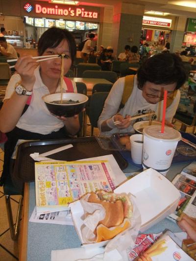 最後の写真はグアム空港内のフードコート。妻と妻のお母さんはそばとラーメ...