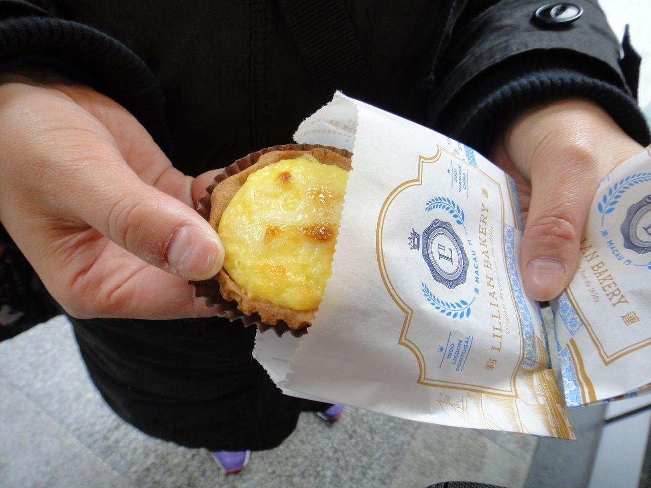 エッグタルトも美味しいですが、横にあるチーズタルトもオススメです。エッグタルトに比べ甘さも控えめで、食べ比べもいいと思います。共に4元(60円)です。- 旅行時期