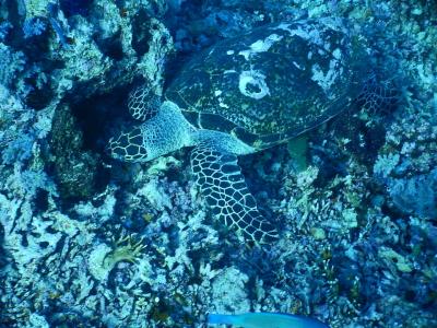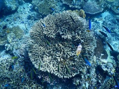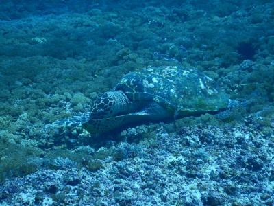 透明度抜群の海でディープダイビングの講習。イルカ4匹も出たのだが、あい...