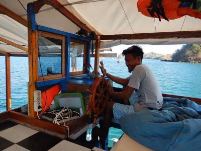 ラブハンバジョにある港から大きなダイビングボートにて出発。およそ1時間...