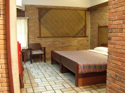 レンガの壁と焼レンガ風の床タイルを用いた西洋風な感じに、地元工芸品を使った壁掛けが良くマッチしていておしゃれな内装になっています。