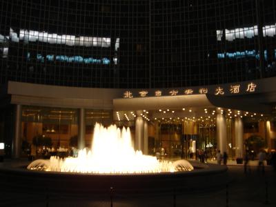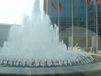 グランドハイアット北京の前。この噴水すごい勢いで流れてます。近くにイカ...