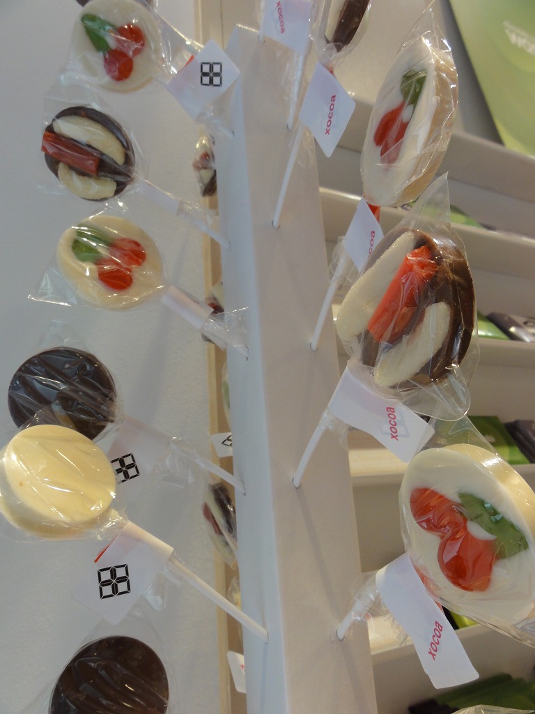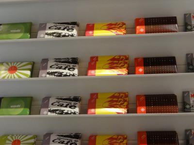 小さな店ですが、チョコの種類は豊富。見た目に楽しいチョコが多いです。