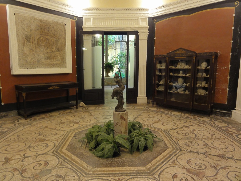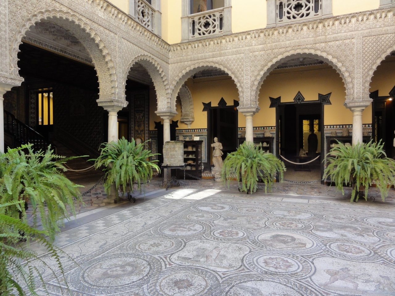 お屋敷の中に入ると、まず目に入るのはパティオの床を覆うモザイク。ローマ遺跡が残るイタリカという町から運んだそうですが、どうやって運び込んだのが不思議で仕方ないです。
