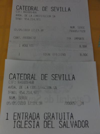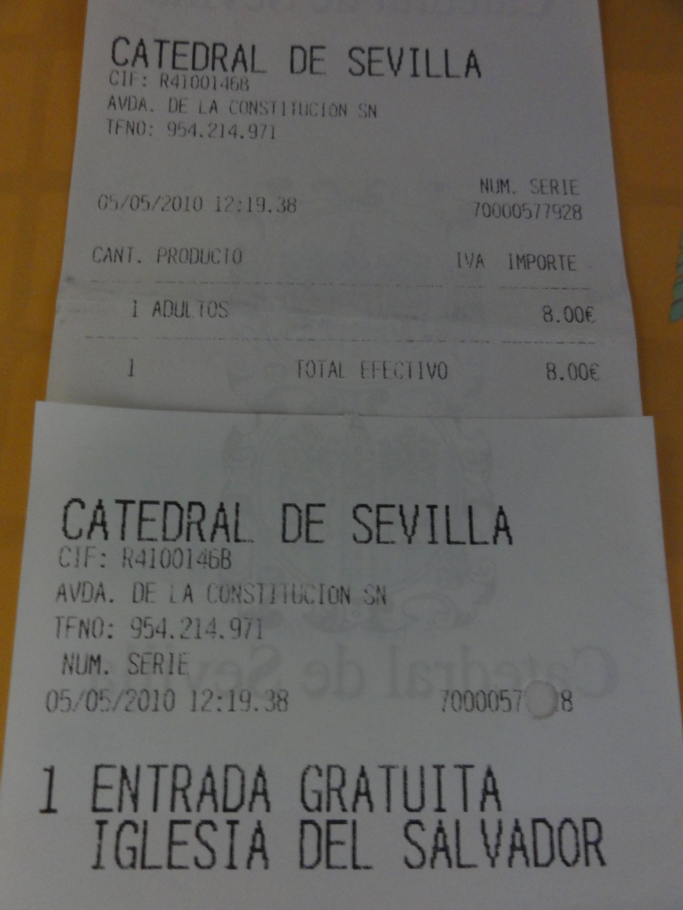 これは、セビージャで2番目の大きさを誇るエル・サルバドール教会の無料入場券です。