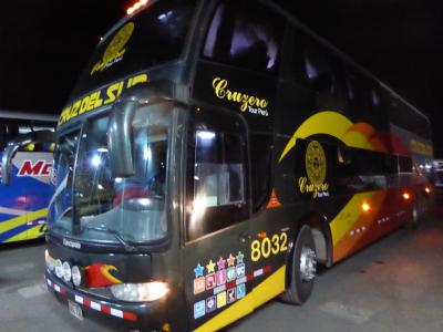 デル・スール社の夜行バスはノン・ストップなのが安心でした。走行中、予定外のルートを外した場所で停止したりすると、自動的に報告されるシステムが備わっているそうです。