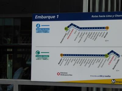 その後、機械でチャージするのですが、小銭がないから両替してもらえるか窓口で聞いたら、そのままチャージもしてくれ、旧市街へはバスC(セー)、最寄り駅はJiron de la Union(ヒロン デ ラ ウニオン)だと、メモまで書いて渡してくれました。