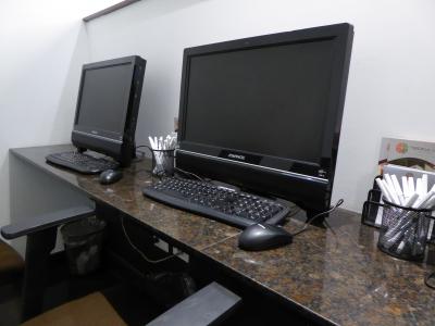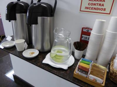 1階のフロントの奥にソファやPCルームがあり、セルフのドリンクセットが用意してあるので、チェックアウト後空港に向かうまで時間つぶしもできます。